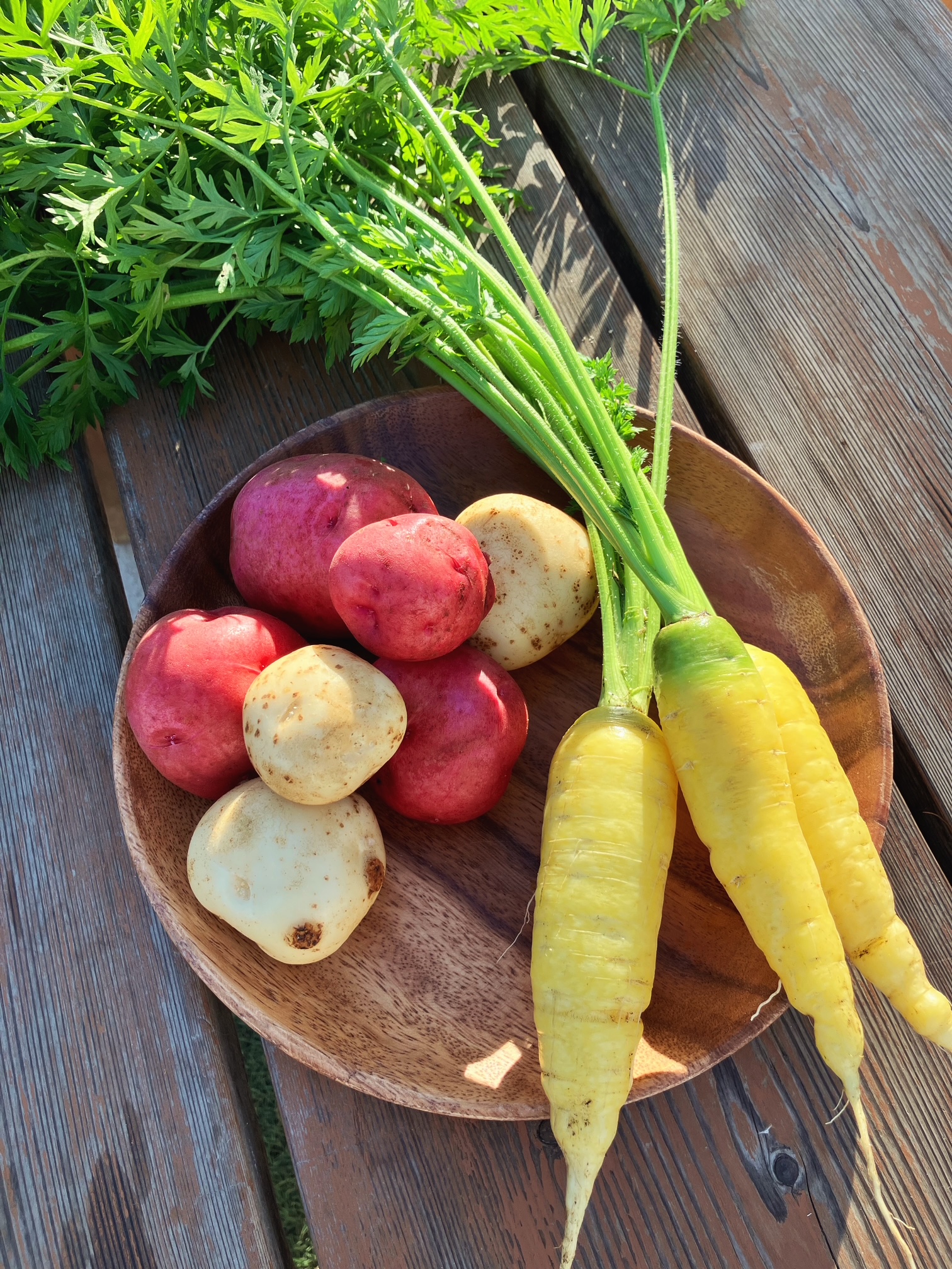 ぼくらの農園から、掘りたてのじゃがいもと人参が入りました。