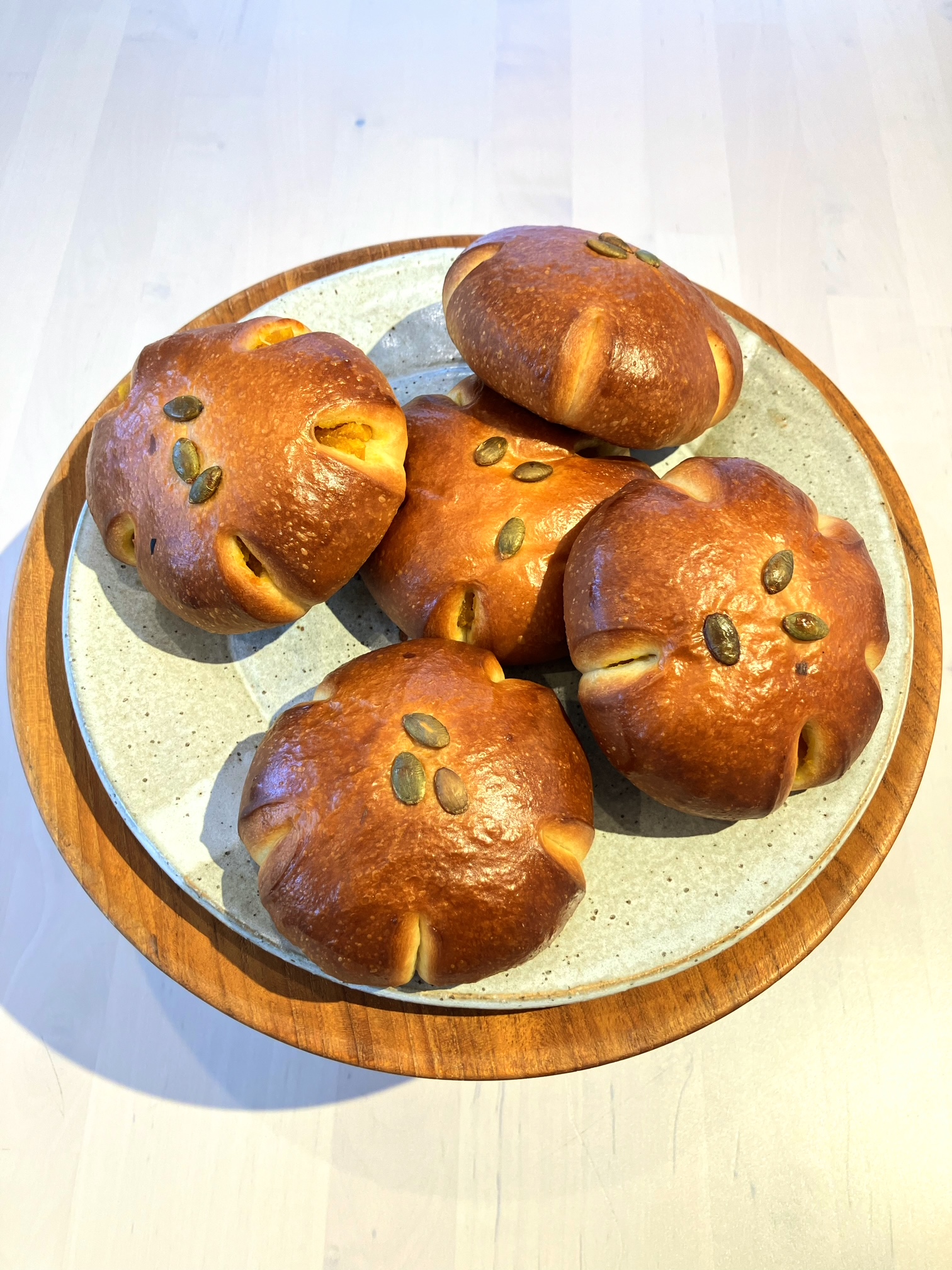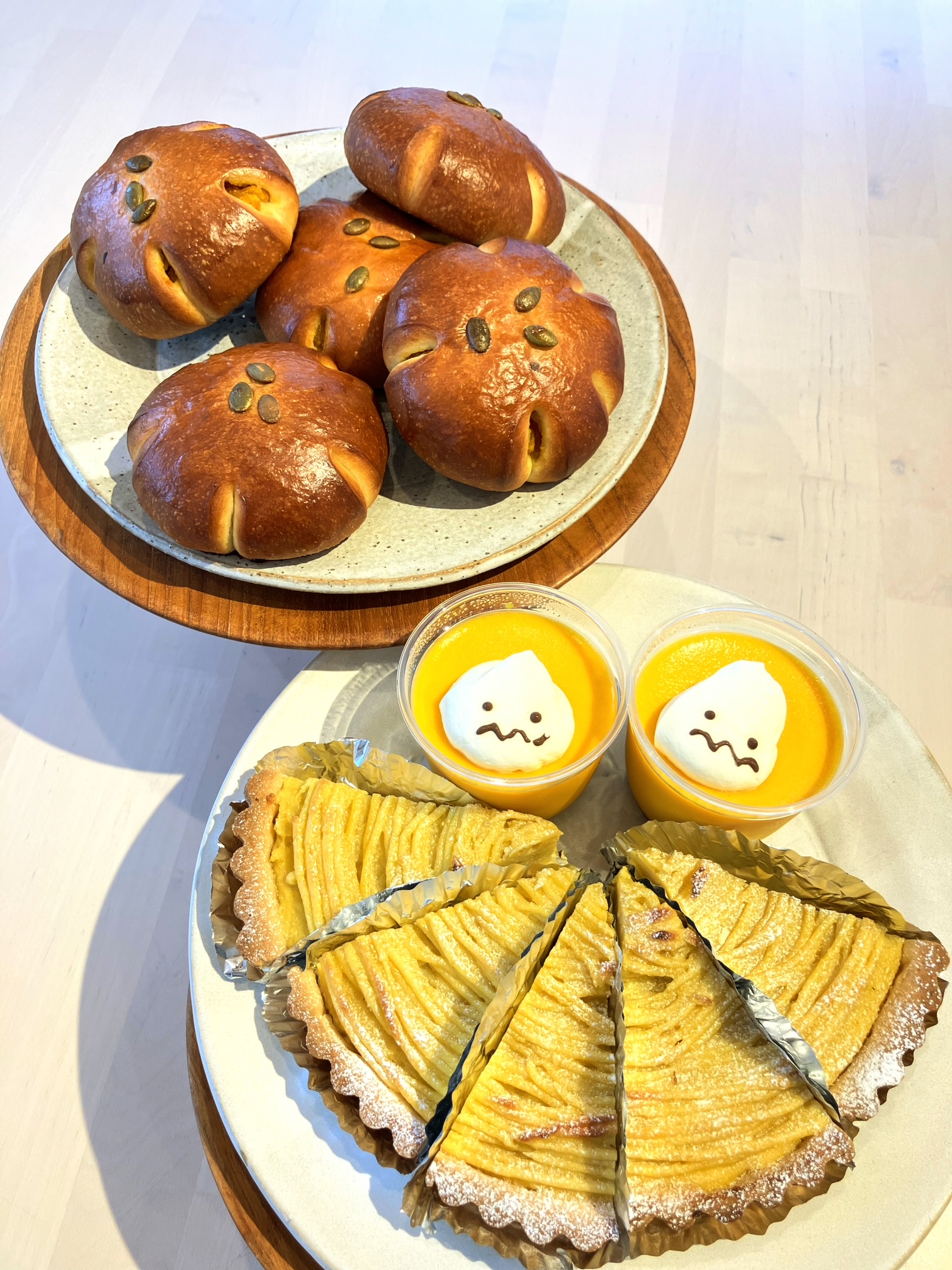 秋のパン新製品が少しずつお店に並び始めています。 今日はしっとりかぼちゃあんを少し甘めの生地で包んだ「かぼちゃあんぱん」が販売開始でした。 1つ¥250
