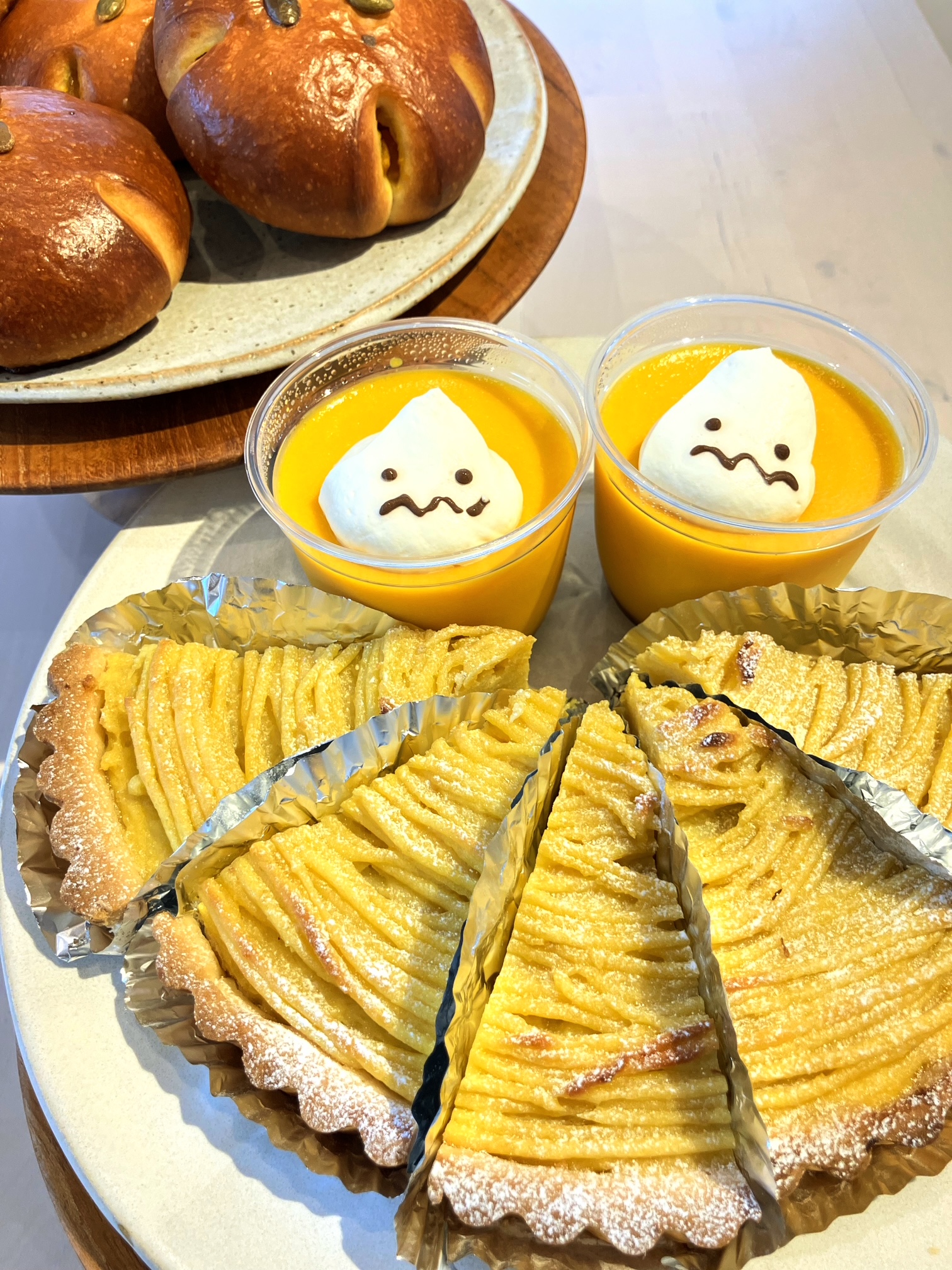人気の濃厚かぼちゃプリンは、ハロウィン限定でおばけクリームになっています。 ¥400