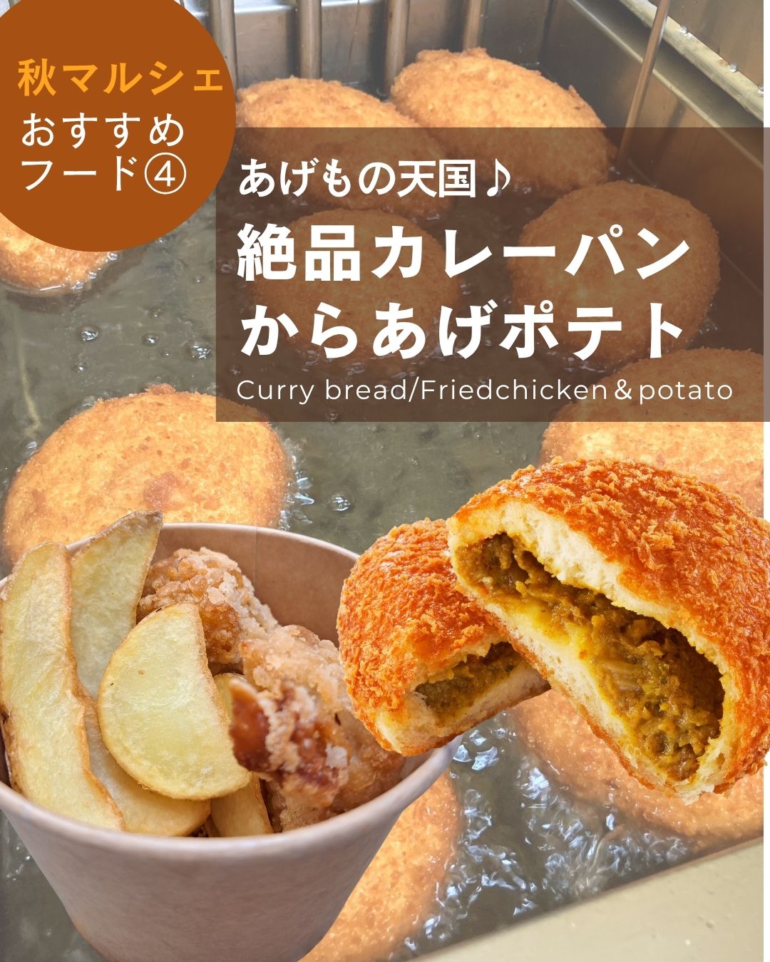 ④絶品カレーパンなど:目の前で揚げたてをお渡しする揚げ物ブースからは、イベント限定カレーパンやからあげなど、食べ歩きも楽しいですね。