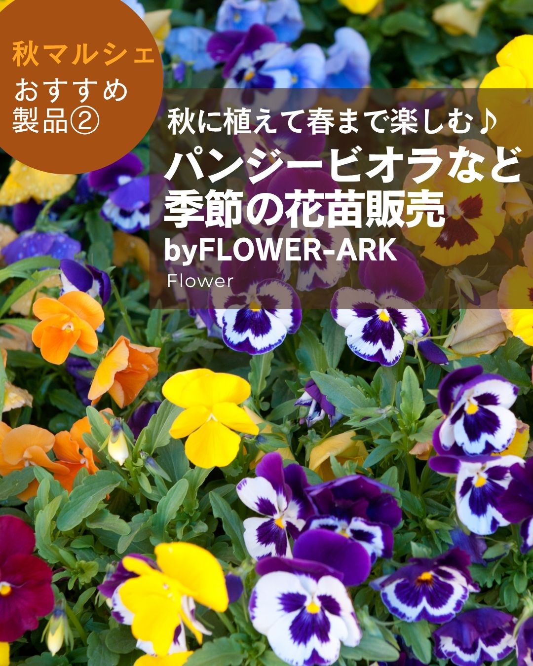 ②季節の花苗:パンジーやキンギョソウなど今植えて春まで楽しめる秋のガーデニングにぴったりの苗を「フラワーアーク」から。