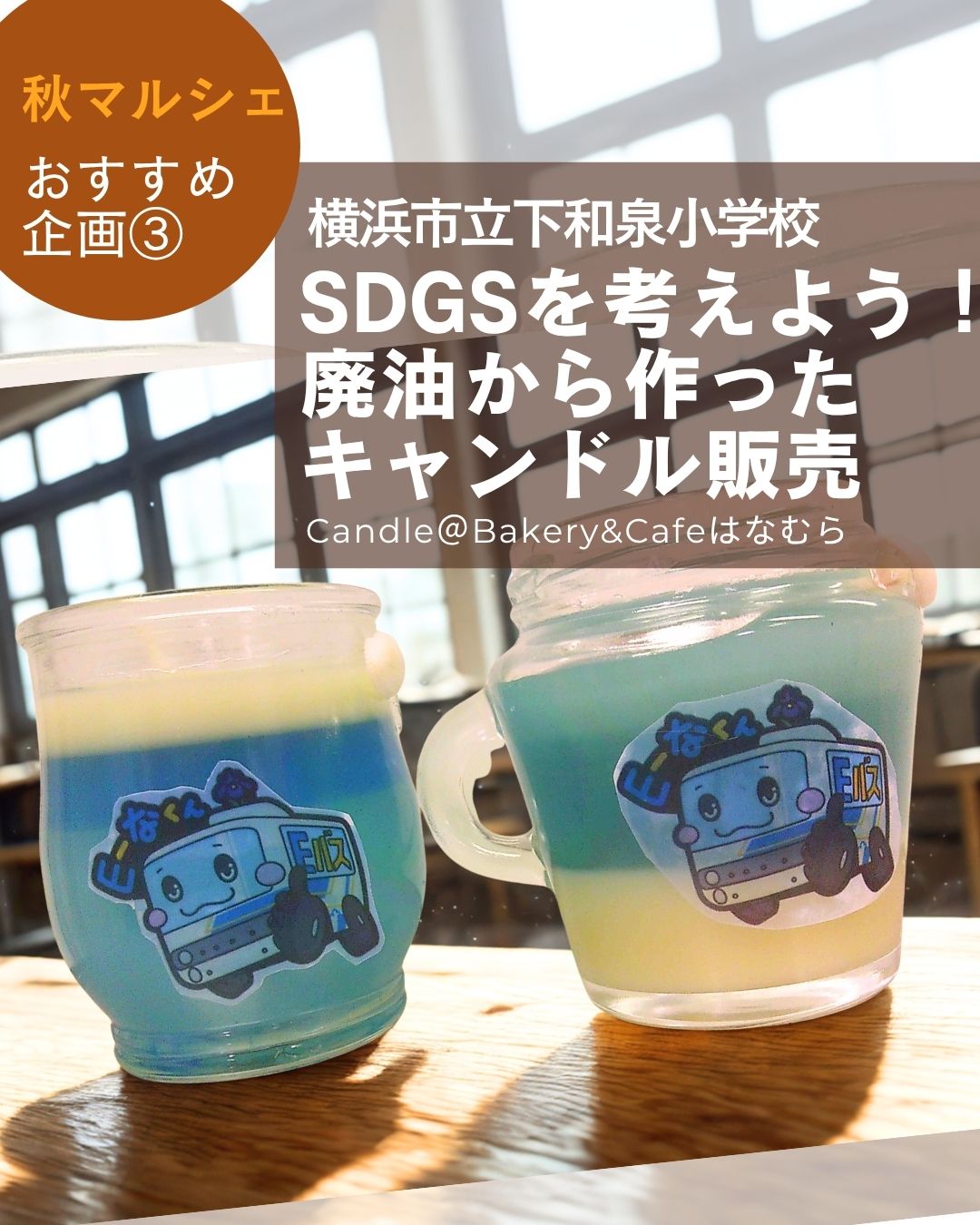 ⑤下和泉小キャンドル販売:横浜市立下和泉小学校の生徒さんがSDGSを考え、自分たちの街が素敵に持続するようにと廃油を使ったキャンドルを手作り販売。
