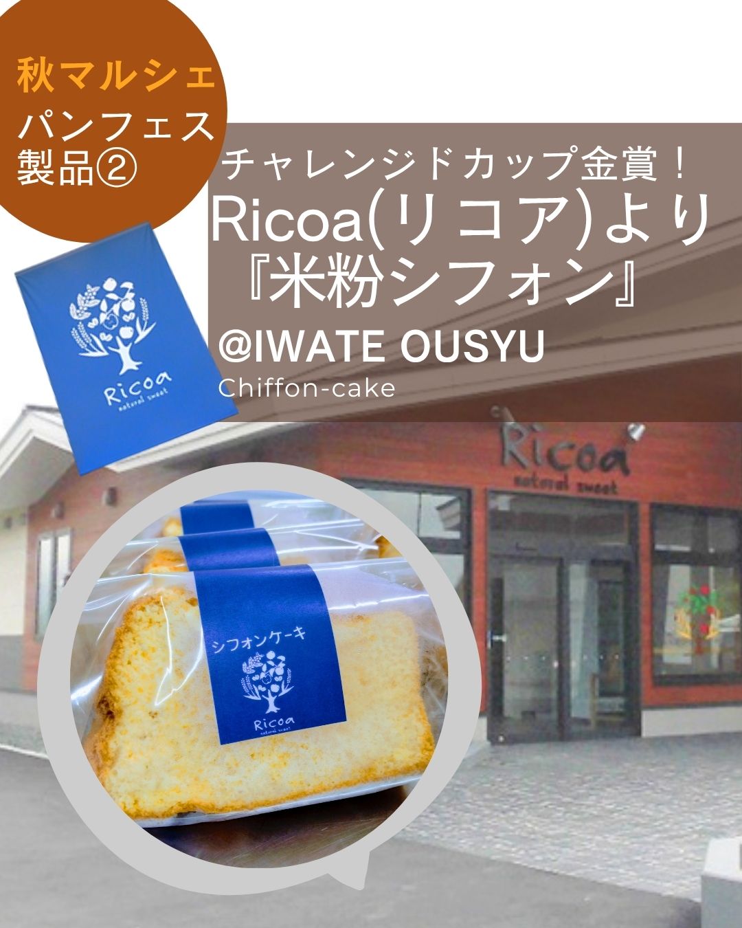 ●チャレンジドカップ菓子部門金賞 Ricoaより『米粉シフォン』Ricoaの地元江刺産の米粉を使用したシフォンケーキ2種