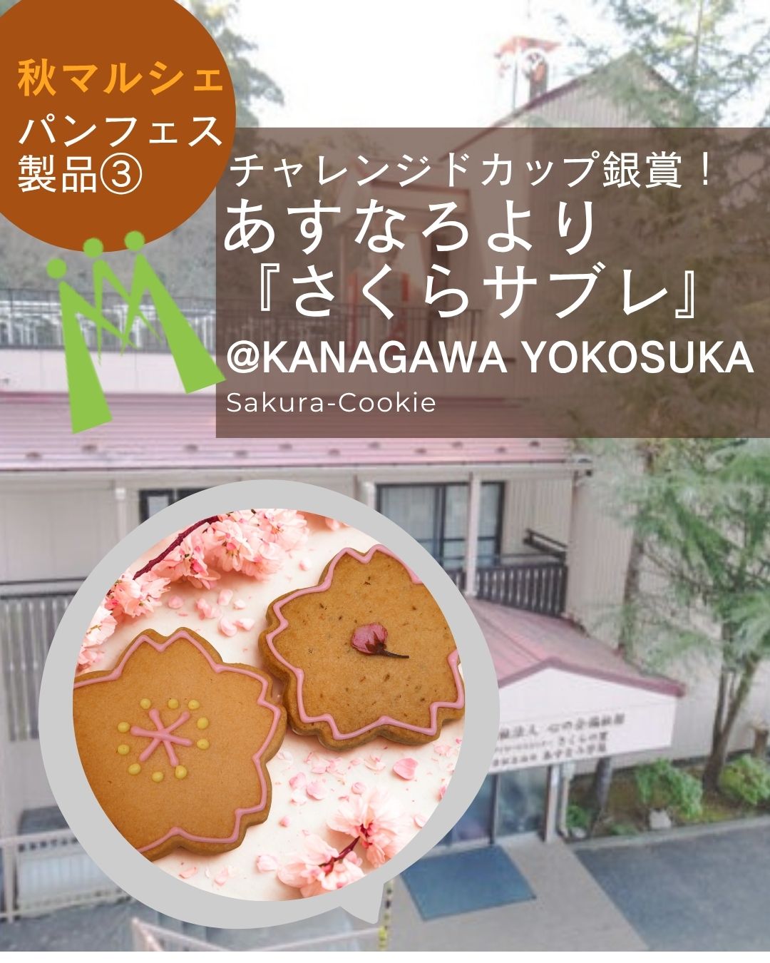 ●チャレンジドカップ菓子部門銀賞 あすなろより『衣笠さくらサブレ』あすなろの地元横須賀衣笠公園の桜をイメージしたかわいいアイシングクッキー2種