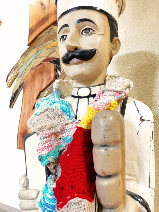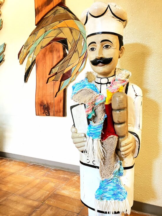 お店のイートインスペースに飾る絵画やニット作品などは、季節などで定期的に入れ替えています。